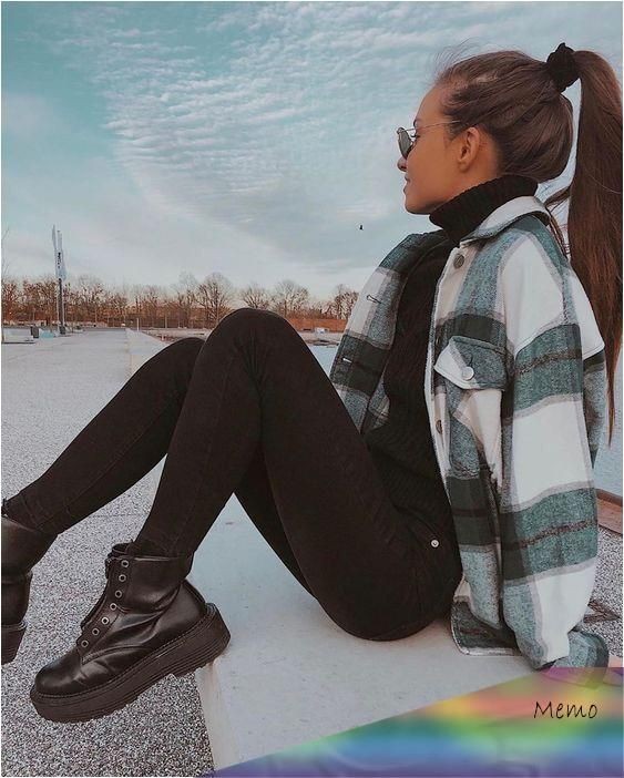 Uno de los outfits infalibles que te hacen lucir arreglada sin tanto esfuerzo es la fórmula de leggins negros con una camisa de cuadros larga. Compleméntalo con unos tenis blancos o unas botas tipo combate.