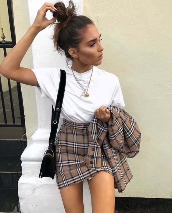 Uno de los outfits infalibles que te hacen lucir arreglada sin tanto esfuerzo es la fórmula de leggins negros con una camisa de cuadros larga. Compleméntalo con unos tenis blancos o unas botas tipo combate.